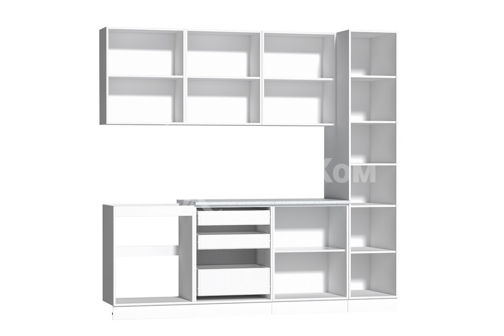 Нижние шкафы комплектуются регулируемыми опорами и клипсами для крепления цоколя