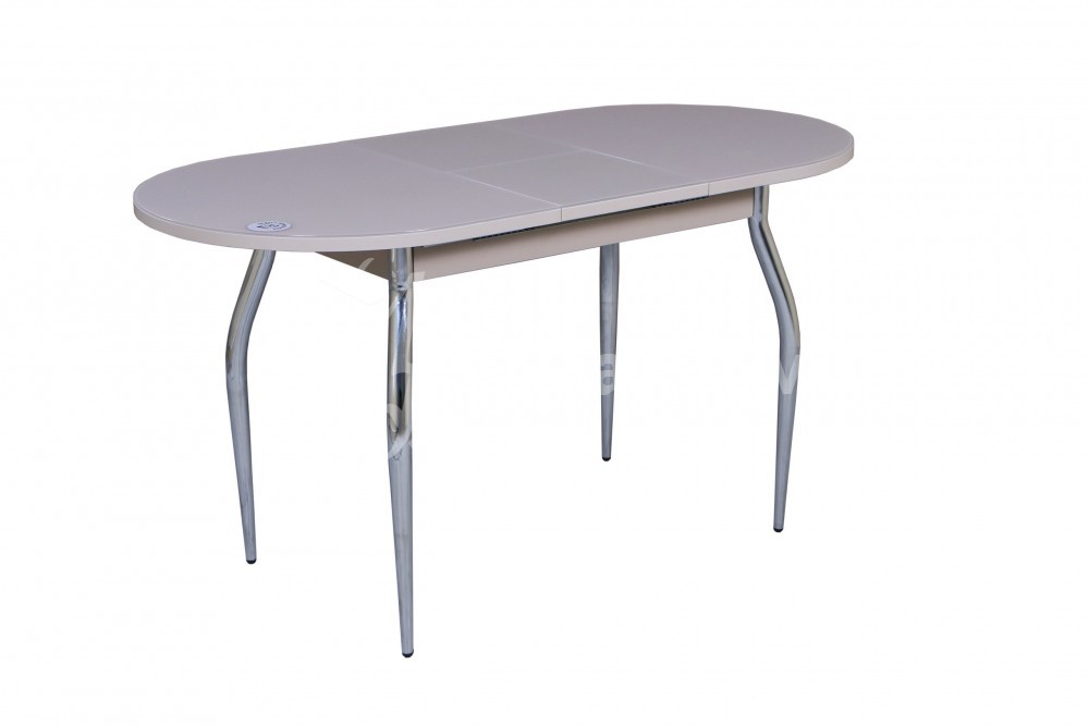 69/79 Стол “Сатурн 2”. Вариант исполнения стола: раздвижной. Столешница изготовлена из закаленного стекла, толщиной 4 мм. Вставка может изготавливаться как из пластика, так и из стекла. Система вставки стола “бабочка”.
